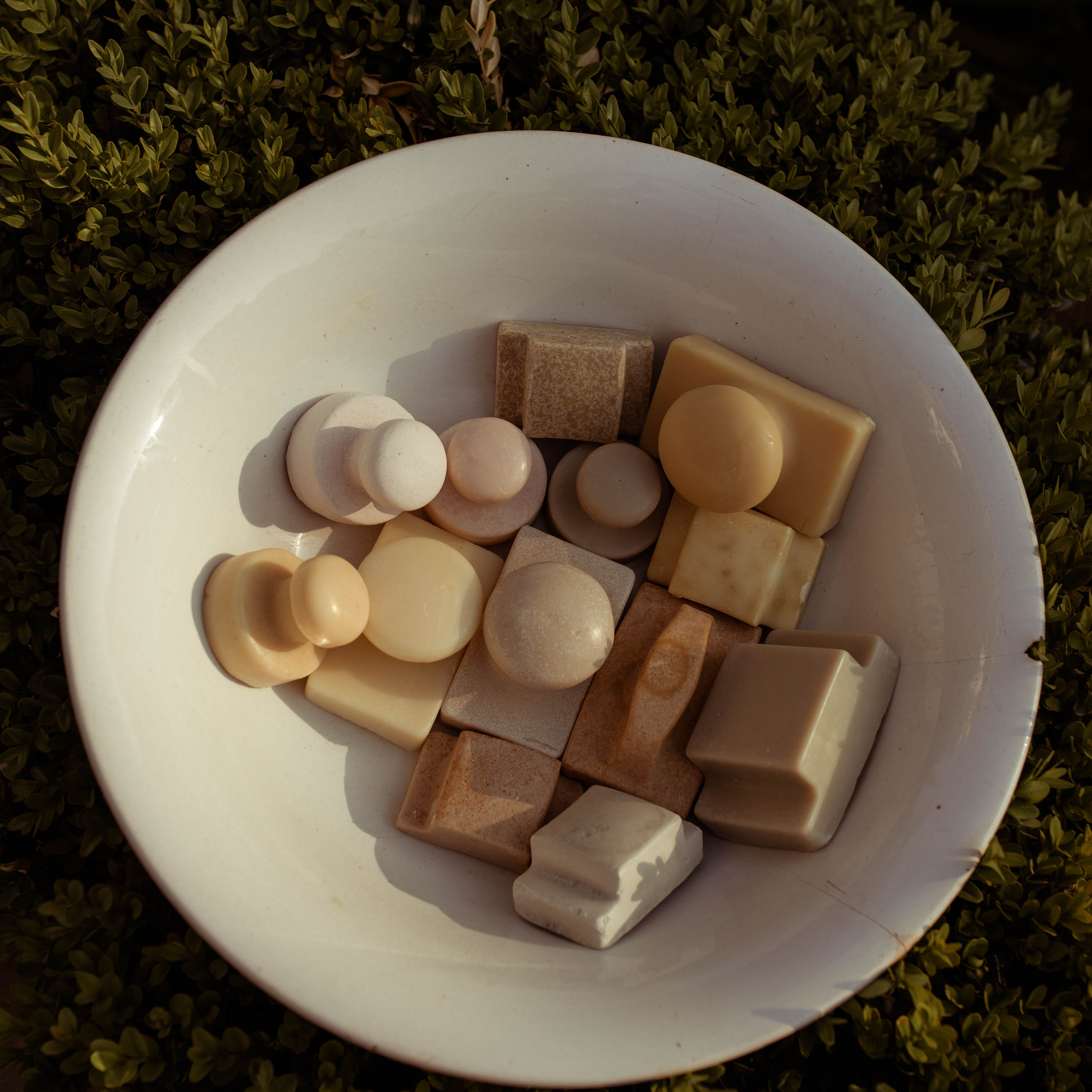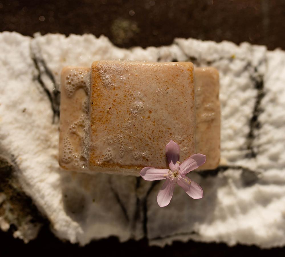 Our soaps include almond oil, castor oil, shea butter, coconut oil, olive oil, sustainably sourced palm oil, avocado oil to leave your skin deeply cleansed and hydrated. Soaps are scented with essential oils for relaxation and various benefits. No synthetic fragrances or artificial colorants are used.